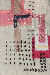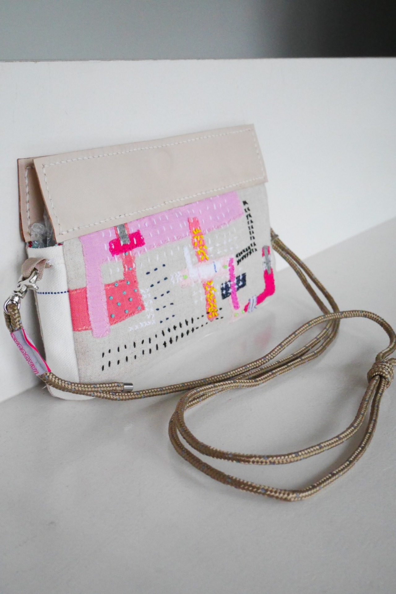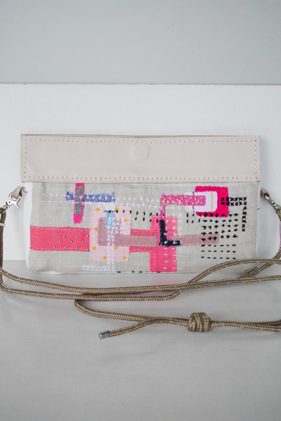 Materials: linen fabric, canvas, glass beads, leather, original rope
