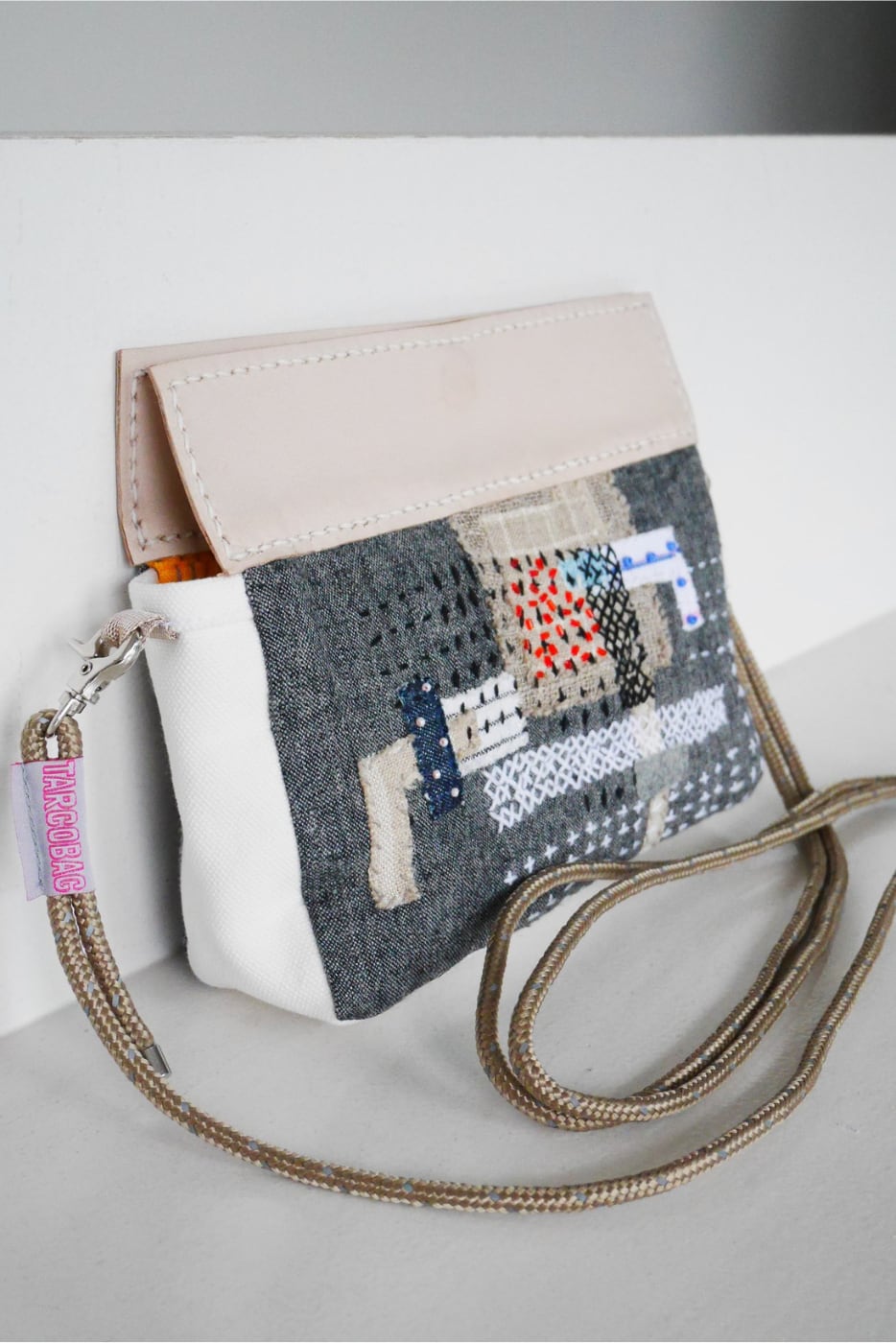 Materials: linen fabric, canvas, glass beads, leather, original rope