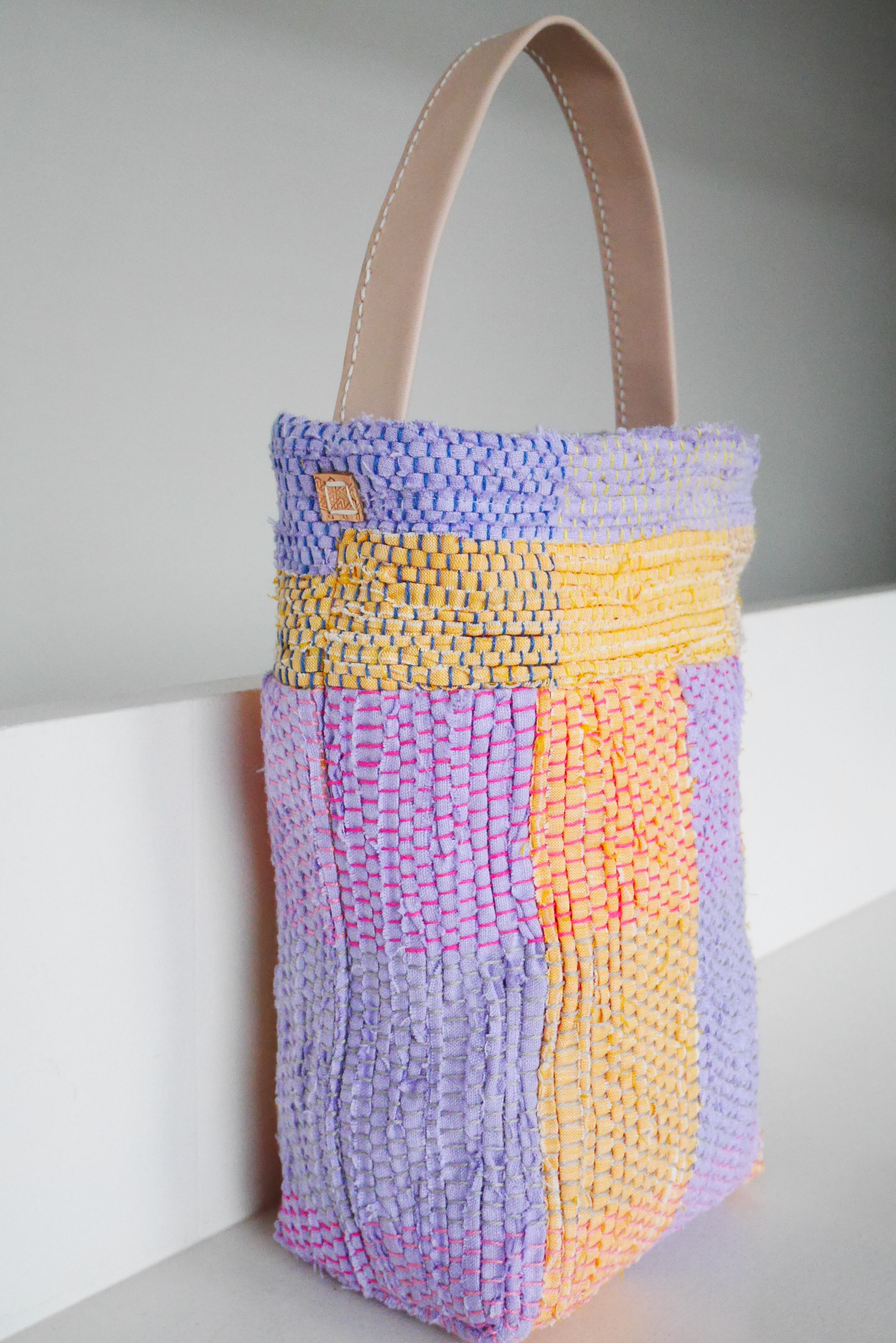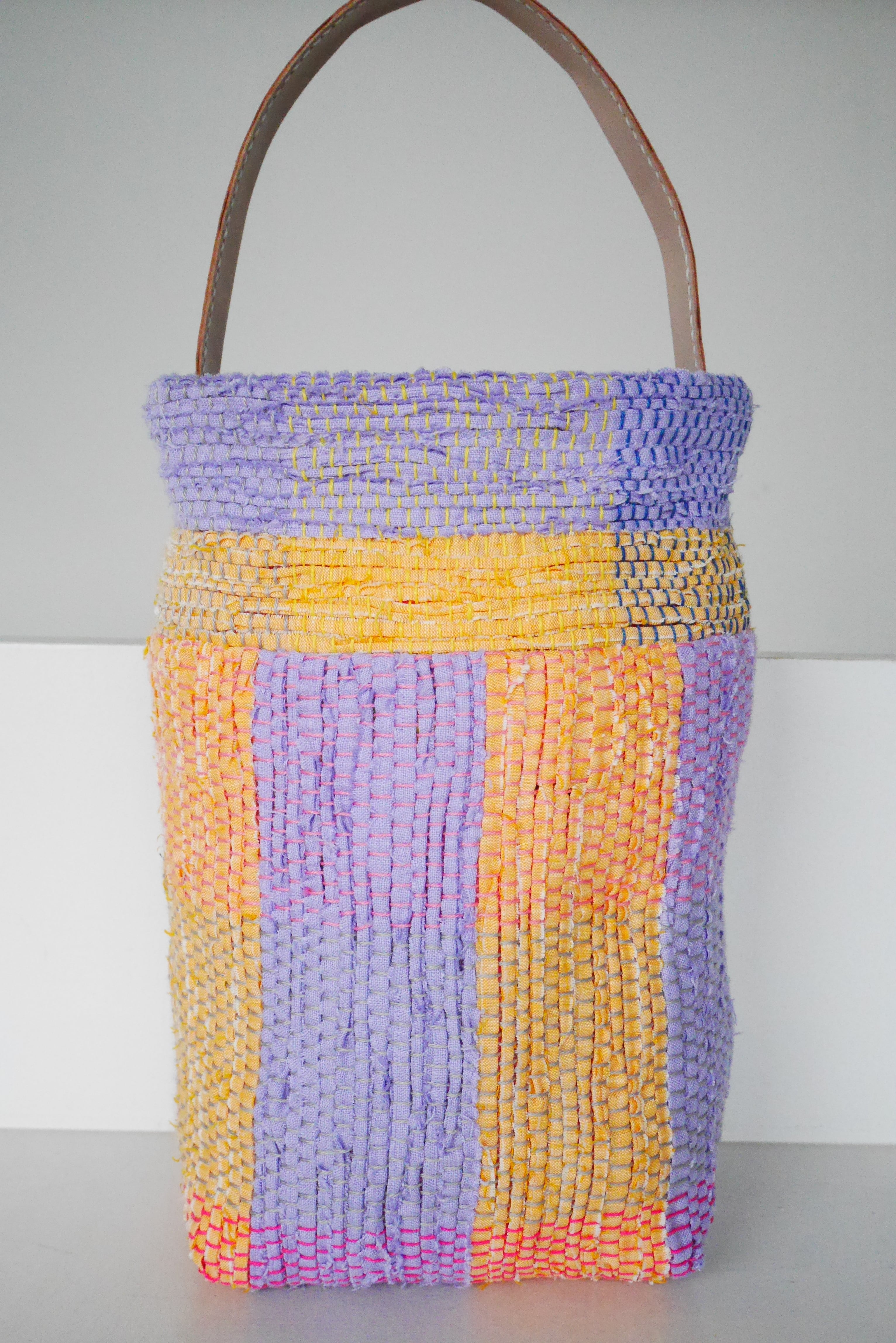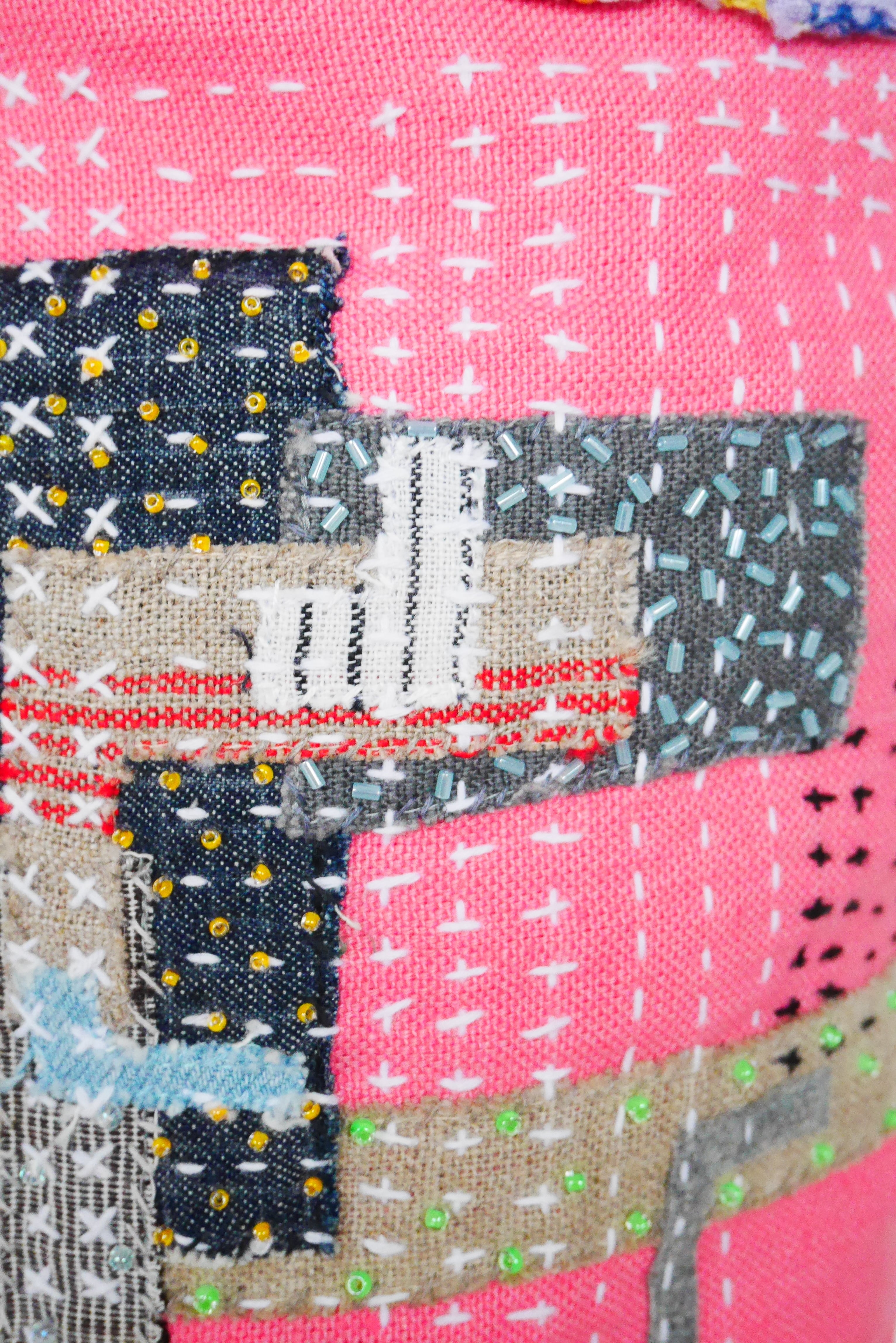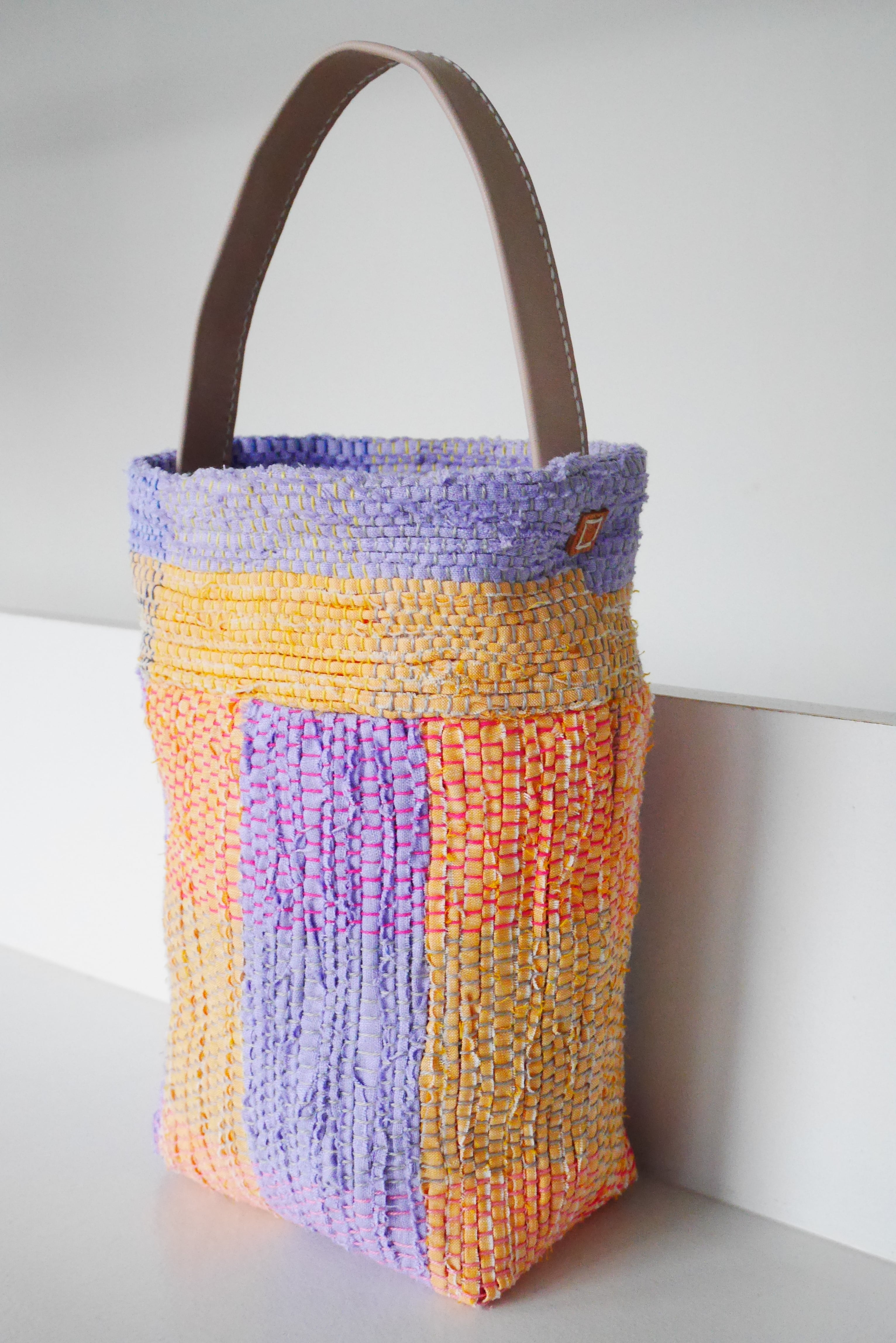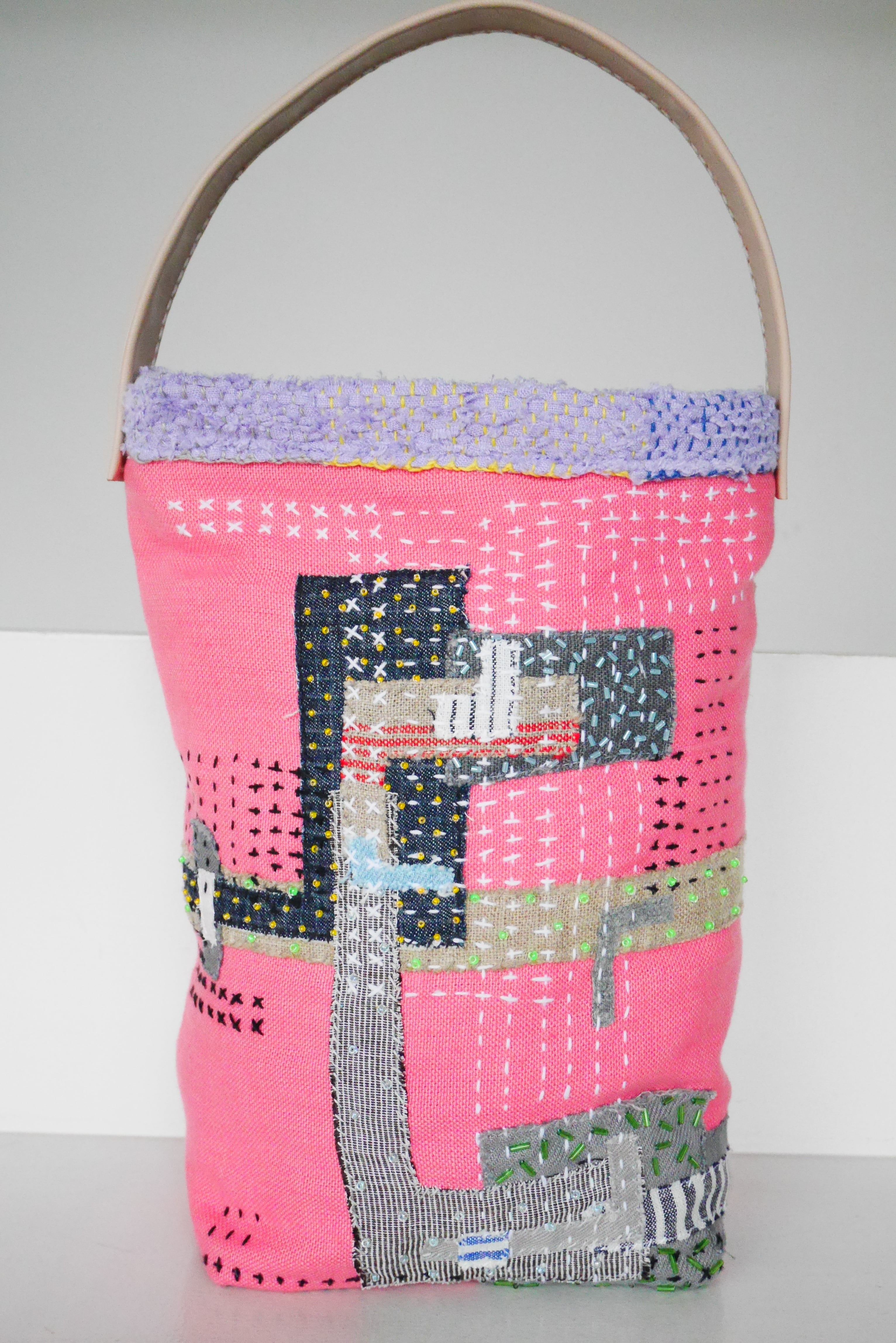 作品2302 l コーラルピンクと裂織りが入れ替わる構築
